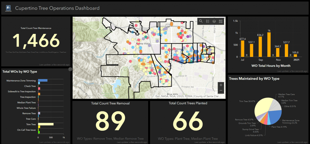Dashboard displaying Cupertino’s urban forestry tree operations.