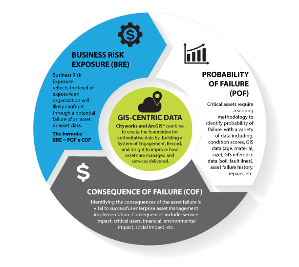 To effectively manage the complexity of public infrastructure and assets, GIS must be at the heart of the data collection solution. GIS-centric technology serves as the system of record for risk-based assessments. Basic data identifiers—such as asset attributes, location, age, condition assessments, failure history, and more—provide valuable information for calculating risk.